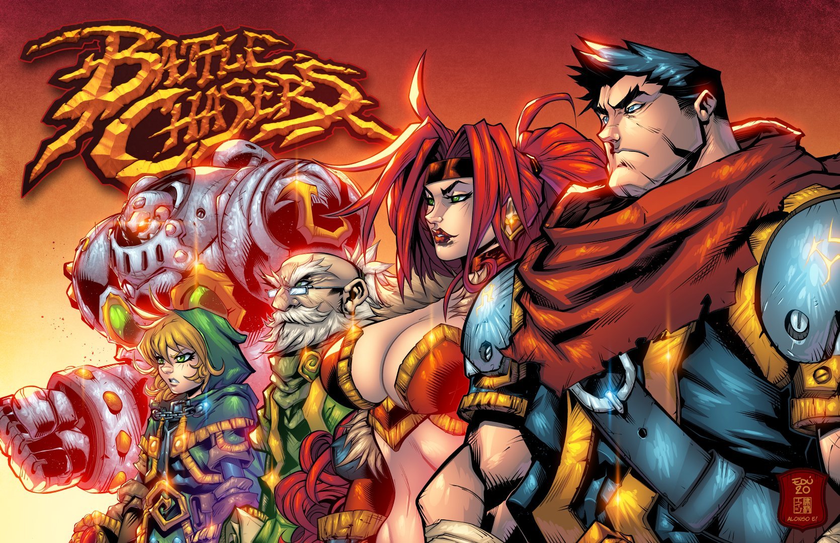 Battle Chasers: Calibretto, Gully, Knolan, Red Monika and and Garrison